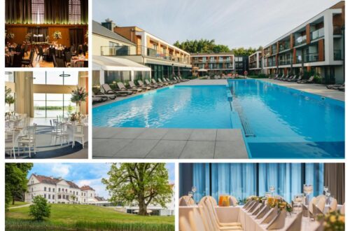 Restauracja Kryształowa to przestrzeń z dużym parkietem i tarasem, idealna na większe przyjęcia. Z kolei Sala Witrażowa, największa w hotelu, daje wiele możliwości aranżacyjnych i często łączona jest z Salą Lustrzaną, co pozwala stworzyć naprawdę imponującą przestrzeń. Całość uzupełnia dobra kuchnia i profesjonalna obsługa, która krok po kroku prowadzi pary przez proces organizacji wesela.