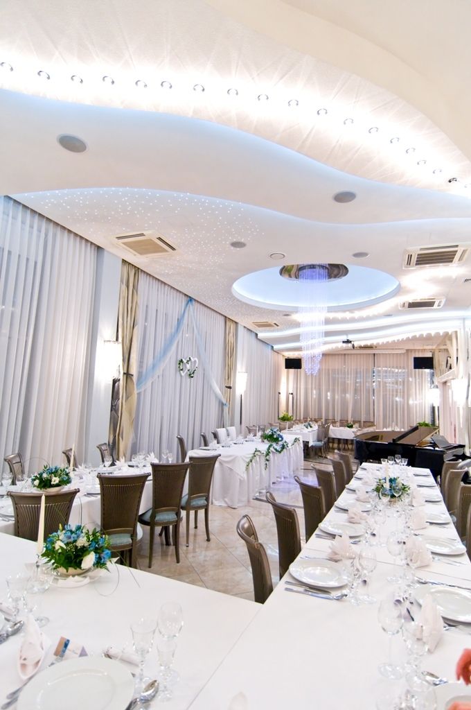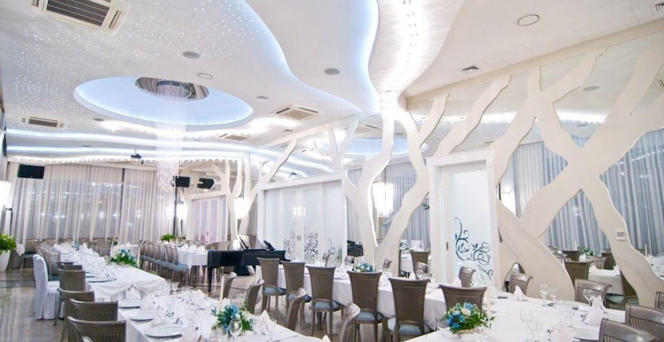 Restauracja Belcanto dysponuje przestronną Salą Weselną. Wnętrze utrzymane jest w chłodnej tonacji, będącej połączeniem klasycznej elegancji z duchem współczesności. Dominującym kolorem jest biel połączona ze srebrem. Efektowne, wiszące żyrandole dodają wnętrzu nowoczesnego charakteru, a subtelne dekoracje przypominające konary drzew z pewnością zrobią wrażenie na wszystkich Gościach! Subtelnie zaaranżowane stoliki, zachwycające dekoracje i perfekcyjnie dobrane dodatki stanowią idealne dopełnienie wystroju.