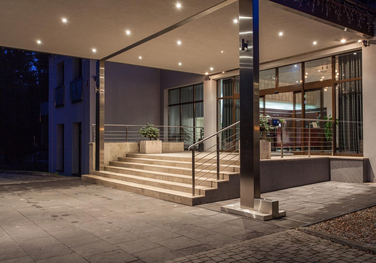 Hotel otacza 2,6 ha ogrodzonego terenu, gdzie połączone gustownymi alejkami, znajdują się: duży parking, kort tenisowy, chata grillowa, podziemna kręgielnia. Położona pomiędzy malowniczymi sosnami udekorowana wiata ślubna pozwoli Państwu zachować niezapomniane wrażenia z plenerowej uroczystości zaślubin.