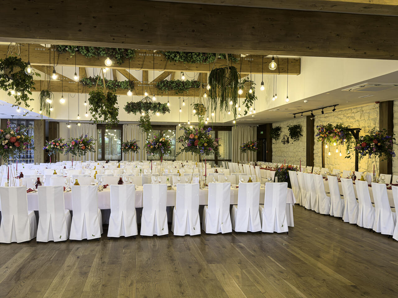 Trzygwiazdkowy Hotel Restauracja Nowy Dwór Bogucin dysponuje dwiema eleganckimi salami bankietowymi, w których mogliśmy zorganziować wesele. Wybralismy mniejszą salę na 40 osób, która świetnie się sprawdziła podczas naszego kameralnego przyjęcia. Nowy Dwór Bogucin zapewnił nam profesjonalną obsługę podczas trwania całej imprezy, były także stylowe dekoracje z kwiatów. Cała oprawa gastronomiczna wypadła również wspaniale.