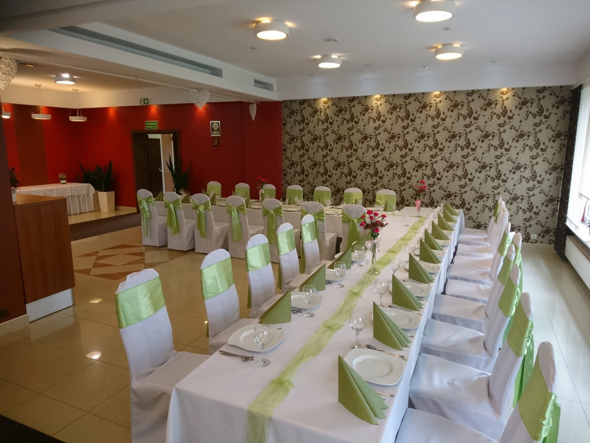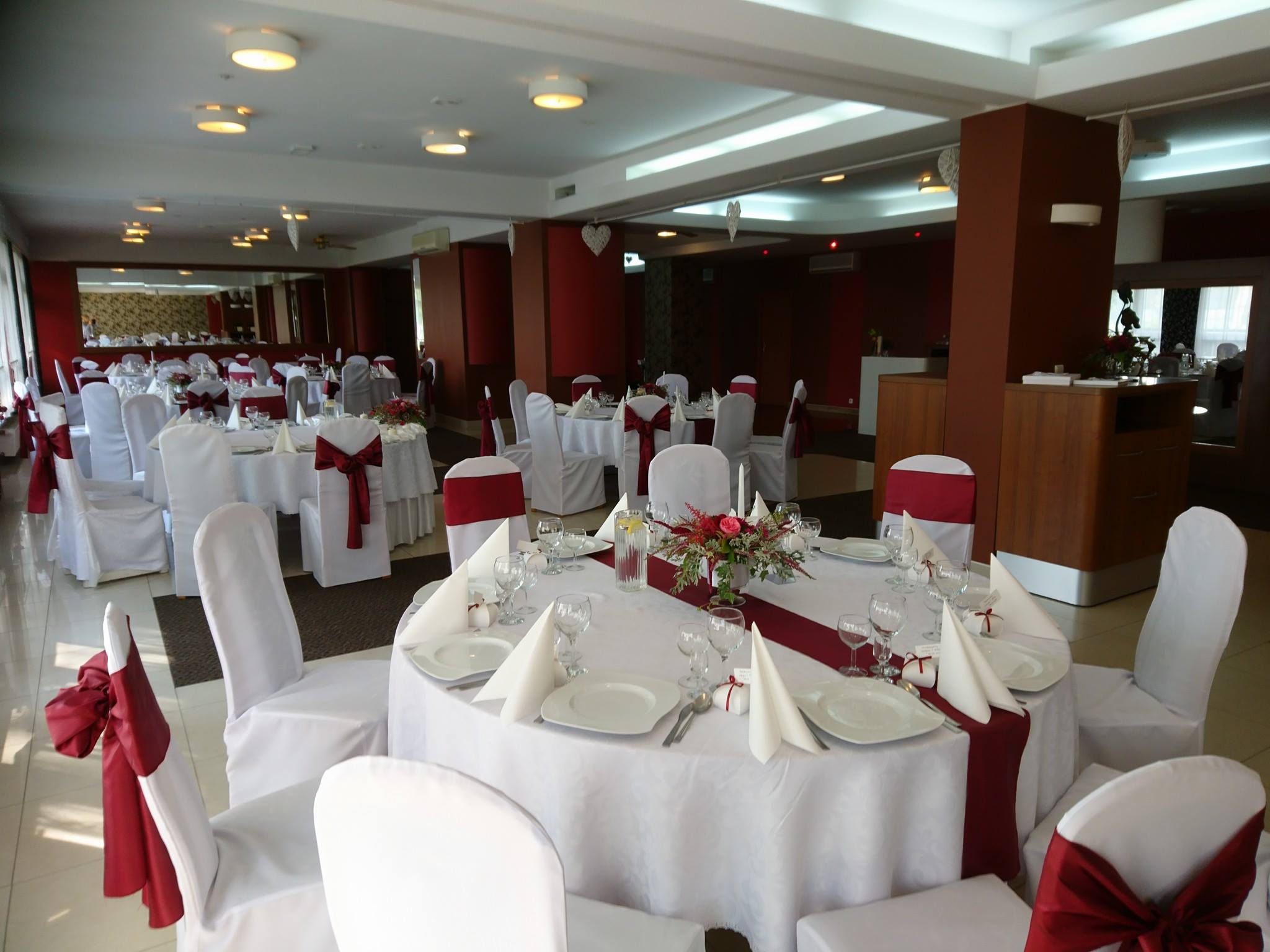 Uroczystość weselną można zaplanować w jednej z dwóch sal bankietowych. Posiadają odmienną wielkość, dzięki czemu można zorganizować zarówno małe przyjęcie w gronie najbliższych, jak i większą imprezę taneczną. Oba pomieszczenia są klimatyzowane, co zapewnia komfort zabawy o każdej porze roku. Wnętrza są doskonale oświetlone.