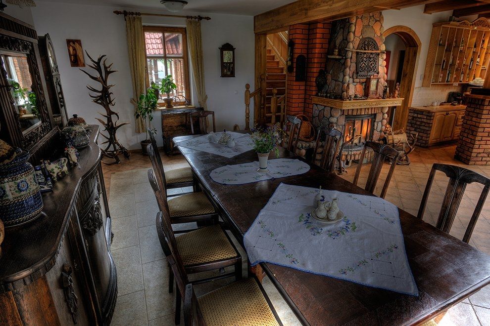 Restauracja Krutyńska oferuje dwie przestronne i eleganckie sale mogące pomieścić łącznie nawet 200 osób. Ponadto, do użytku oddaje także pokaźny taras, na którym znajduje się miejsce dla 100 gości. Ogrodzenie z kamienia łupanego oraz wiejski styl obiektu stwarzają wyjątkowy klimat i niepowtarzalną atmosferę.