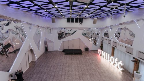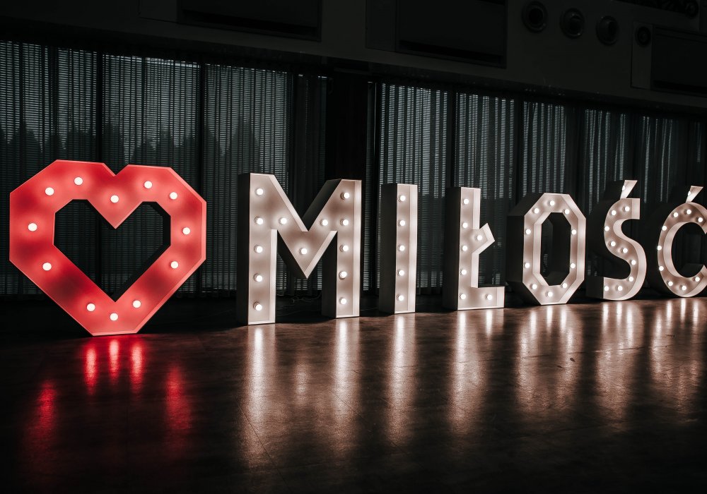 - Elementy zabudowy, takie jak, napis „Miłość", „Love"; ściankę do dekoracji, sztalugę do tablicy z rozstawem stołów oraz mobilną scenę