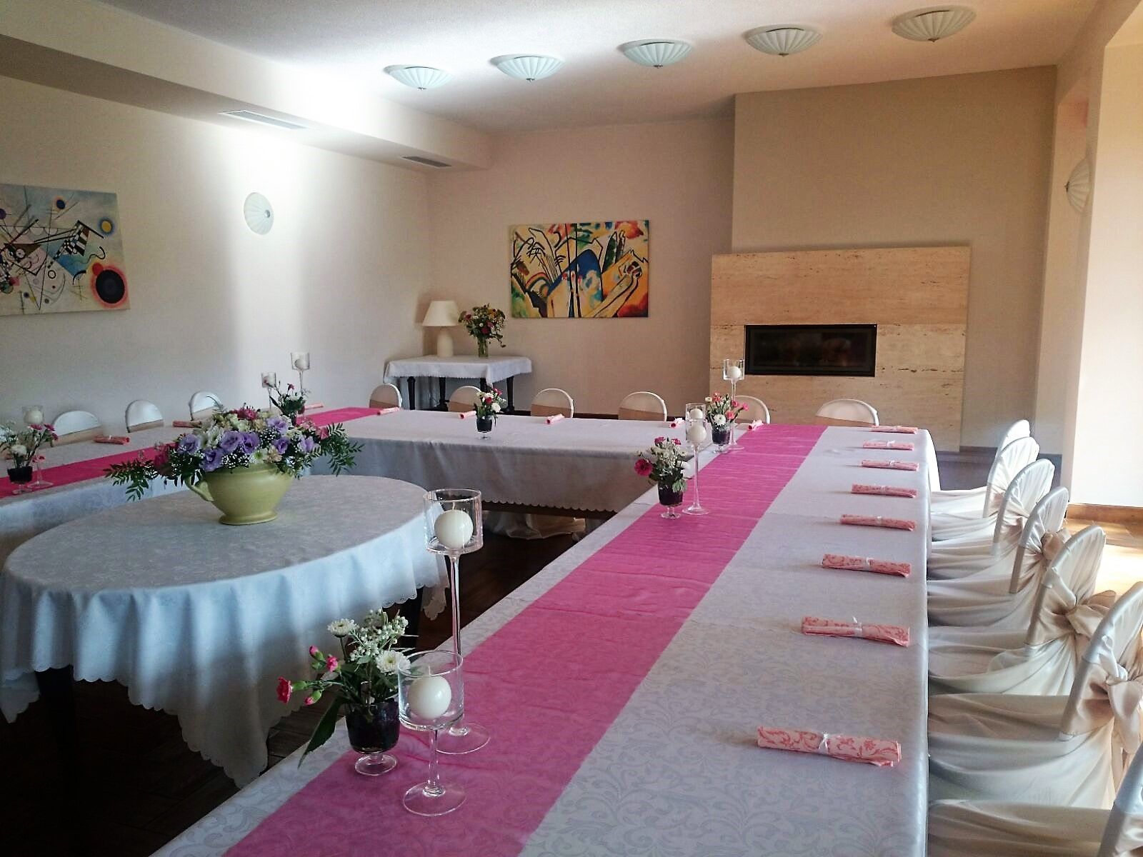 Zajazd Podzamcze dysponuje przestronną salą jadalną oraz oddzielną salą bankietową, by Goście mogli się hucznie bawić do białego rana! Kominek w sali jadalnej przyjemnie ociepla wnętrze, a spragnieni ochłodzenia mogą wyjść na przyległy taras. Obie sale urządzono w klasycznym, eleganckim stylu. Wystrój uzupełniają subtelnie zaaranżowane stoliki, dyskretne oświetlenie oraz piękne kwiatowe dekoracje.