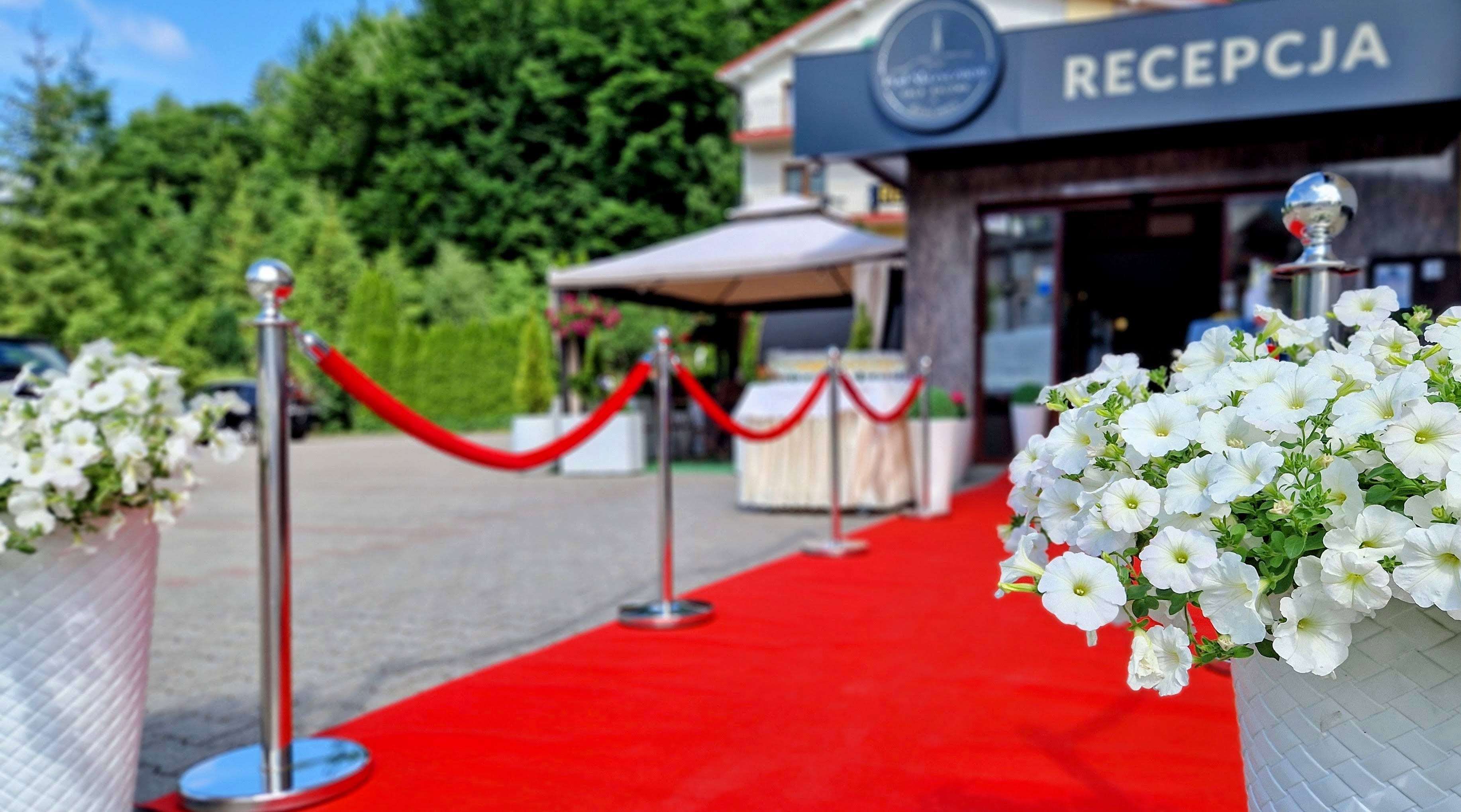 PRZYWITANIE W CENIE! Tradycyjne przywitanie chlebem i solą oraz wspólny toast winem musującym na świeżym powietrzu wzdłuż czerwonego dywanu zapewniamy w standardzie!