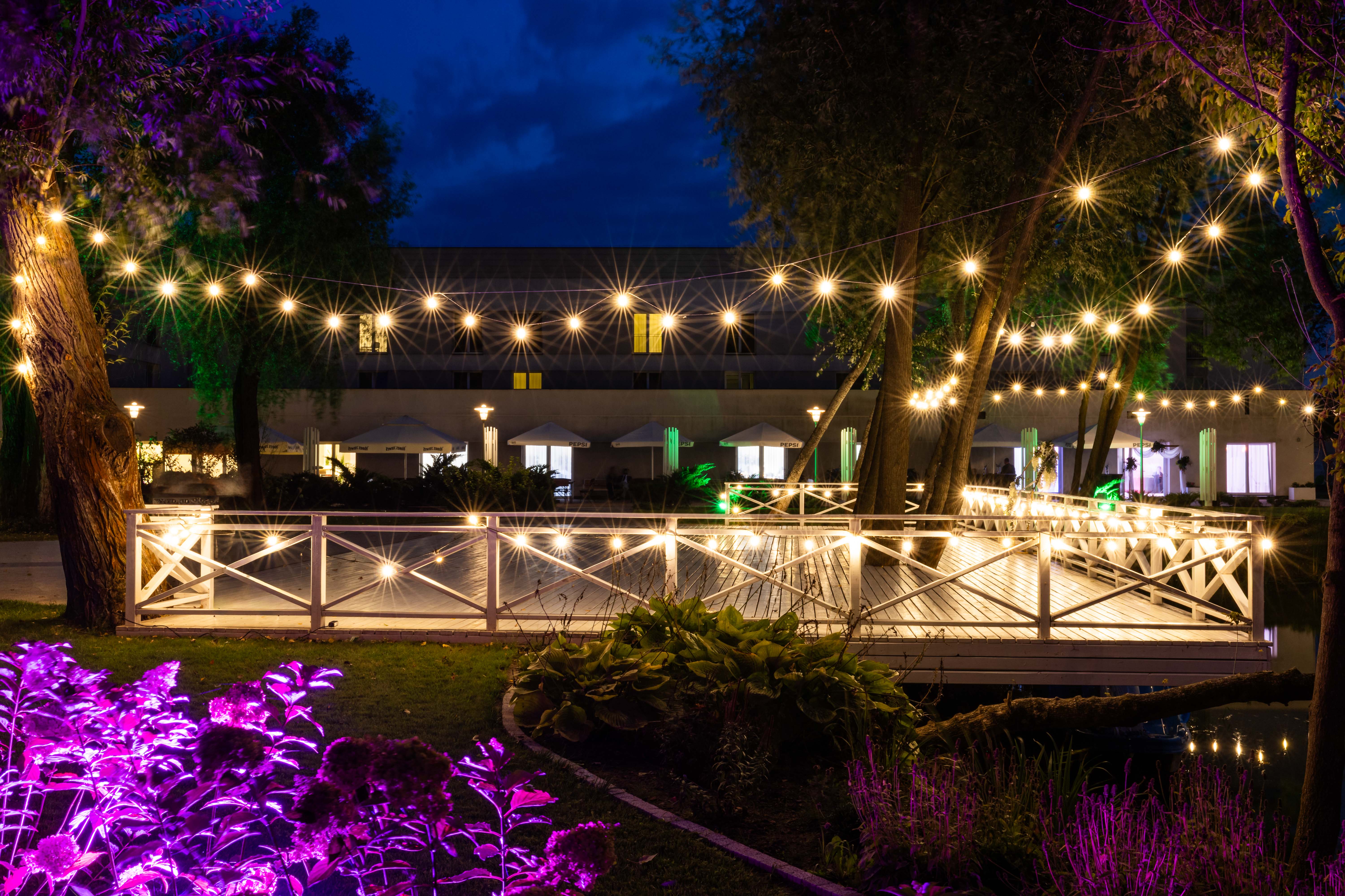 Nowoczesny charakter wnętrz pozwala na dowolną aranżację, a spektakularne efekty świetlne zapewnią dodatkową atrakcję. Co więcej, istnieje możliwość organizacji ślubu i wesela w plenerze i otoczeniu pięknej zielonej natury.