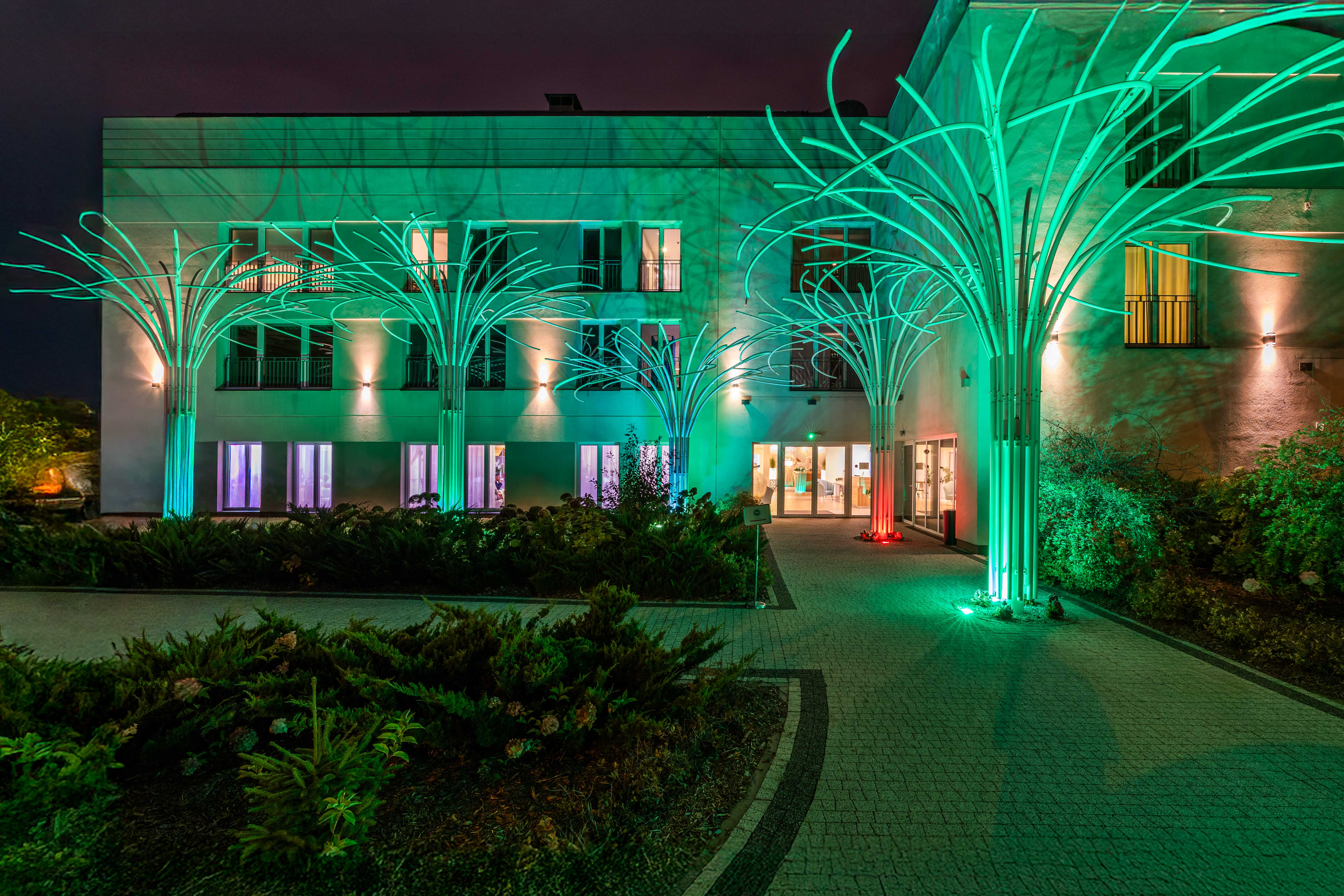 Green GardenHotel to nowoczesny, spokojny obiekt położony w Falentach na terenie malowniczego rezerwatu przyrody Stawy Raszyńskie. Idealnie łączy on ciszę i błogość otaczającej przyrody z miejską infrastrukturą znajdującego się jedynie parę kilometrów dalej Centrum Warszawy.