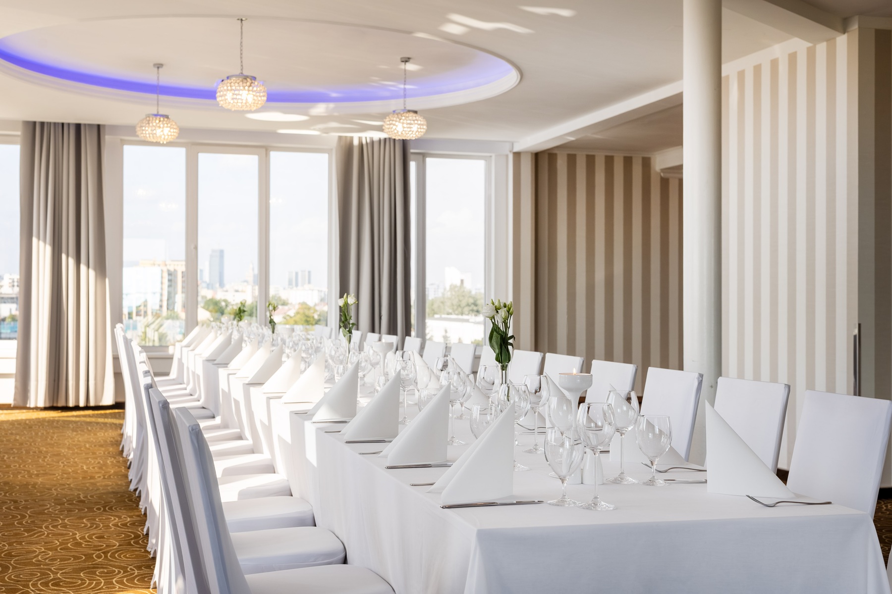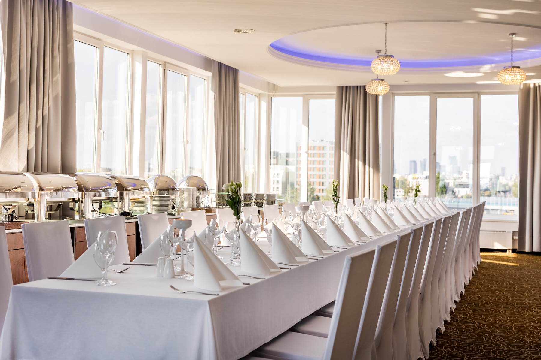 * Sala Widokowa – sala usytuowana na VI piętrze Hotelu Lord, z tarasem widokowym, z którego rozciągają się piękne widoki na Warszawę. Sala idealna jest dla przyjęć kameralnych, z możliwością przystosowania jej do przyjęć dla 150 gości.