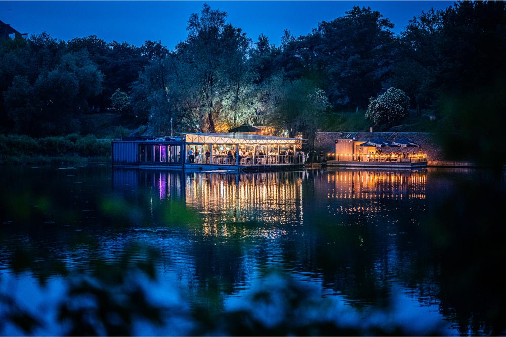 Obiekt został zbudowany z kontenerów morskich i unosi się na wodzie, co nadaje uroczystości niepowtarzalnego klimatu i wyróżnia ją na tle klasycznych sal weselnych. Do dyspozycji Pary Młodej pozostaje 120 metrów kwadratowych wnętrza z parkietem tanecznym, barem i zapleczem sanitarnym, a także 120 metrów kwadratowych zadaszonego, pływającego tarasu, który poza sezonem letnim jest osłonięty i ogrzewany. Całość uzupełnia około 60 metrów kwadratowych tarasu w formie strefy chilloutu – idealnej na spokojne rozmowy, odpoczynek gości czy wieczorne atrakcje.