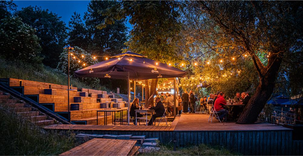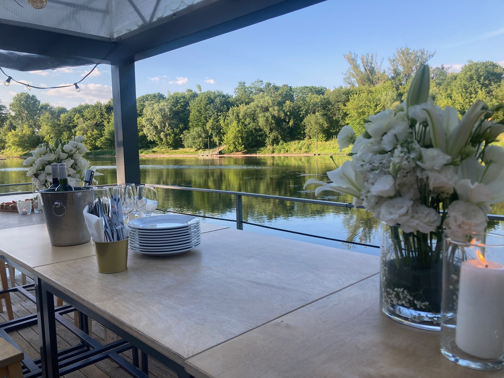 Dodatkowym atutem jest kameralny ogródek nad wodą, wyposażony w osobny bar i nastrojowe oświetlenie. To idealna przestrzeń na welcome drink, luźne rozmowy gości, wieczorną strefę relaksu lub poprawiny w mniej formalnym stylu. Bliskość Wisły i otaczająca zieleń sprzyjają celebracji w swobodnej, letniej atmosferze.