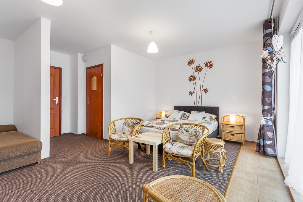 Łącznie pokoje pomieszczą ponad 40 osób. Do wyboru są pokoje 2-, 3- i 4-osobowe oraz 2 apartamenty z oddzielną sypialnią. Do ogólnego użytku gości jest także jadalnia i funkcjonalna kuchnia.
