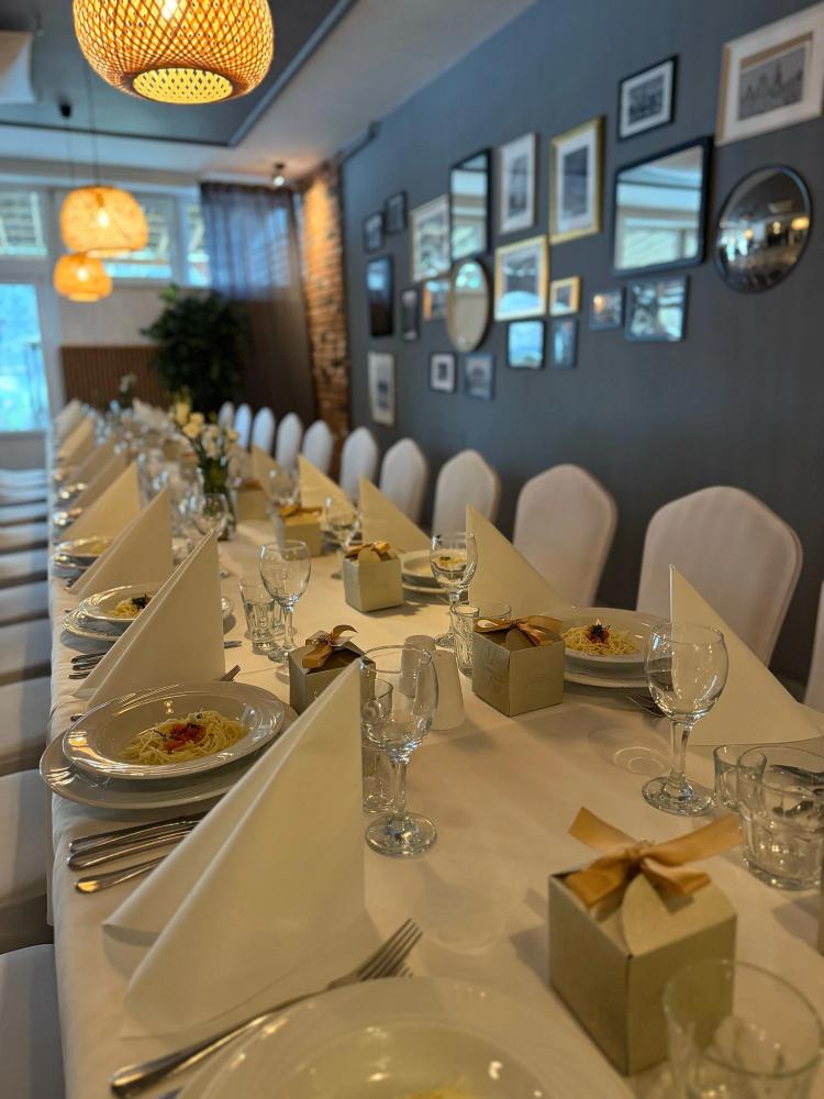 Lokalizacja zapewnia łatwy dojazd z różnych części miasta, a szeroka dostępność miejsc parkingowych zwiększa komfort gości. Duży Pokój stanowi atrakcyjny wybór zarówno na uroczysty obiad w rodzinnym gronie, jak i nastrojową kolację.
