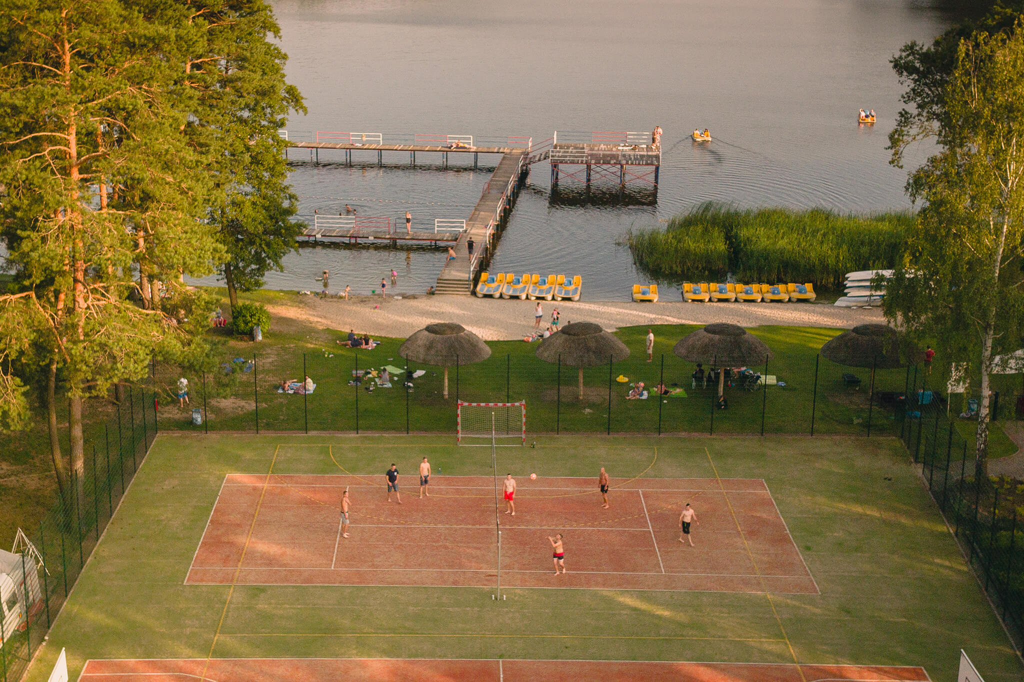 Dla najmłodszych przygotowano bezpieczny i kolorowy plac zabaw, który zapewnia rozrywkę na świeżym powietrzu. Entuzjaści wędkarstwa mogą z kolei skorzystać ze specjalnie wyznaczonego miejsca do wędkowania, zlokalizowanego bezpośrednio nad brzegiem jeziora. Ośrodek dysponuje również polem namiotowym z dostępem do węzła sanitarnego.